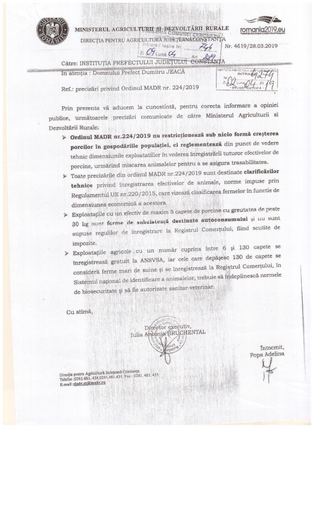 Precizari privind Ordinul MADR nr. 224/2019